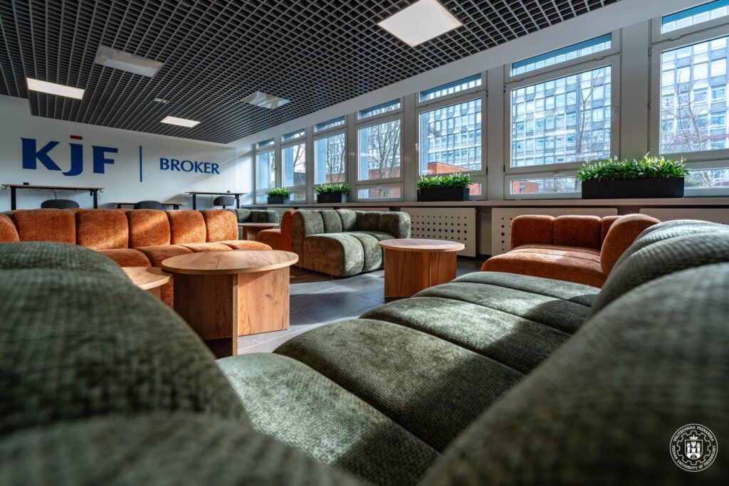 Owocna współpraca KJF Broker z Politechniką Poznańską zaskutkowała otwarciem nowoczesnej strefy pracy oraz wypoczynku dla studentów i pracowników Uczelni. Została ona zaprojektowana i wykonana przez naszą firmę i oddana do użytku w tzw. „budynku z zegarem” Politechniki.